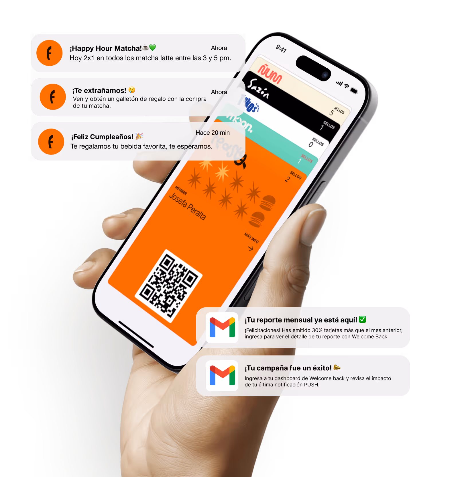 Usar el wallet para fidelizar es una estrategia poderosa porque elimina la fricción, colocando tu marca en el lugar donde tus clientes ya interactúan: sus teléfonos. A diferencia de las aplicaciones tradicionales, los wallets no requieren descargas adicionales, funcionan tanto online como offline y permiten enviar notificaciones PUSH en tiempo real. Además, ofrecen una experiencia rápida y sencilla, con menos fricción para el cliente y mayores tasas de adopción. Con Welcome Back, puedes crear experiencias personalizadas y gestionar relaciones duraderas sin complicaciones técnicas, aprovechando el poder de los wallets para conectar con tus clientes de forma efectiva.